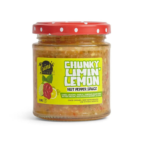 Chunky Limin Lemon Sauce A taste of the caribean Flavour ✓ Heat ✓ All natural preservatives ✓ Suitable for vegans ✓all natural ✓Pure goodness in a bottle,A delicious range of pepper sauces/hot sauces that will bring flavour and compliment any food, we mean any food. Fish, meat, vegan dishes, our sauces will compliment them all. Use the pepper sauces as a dip...